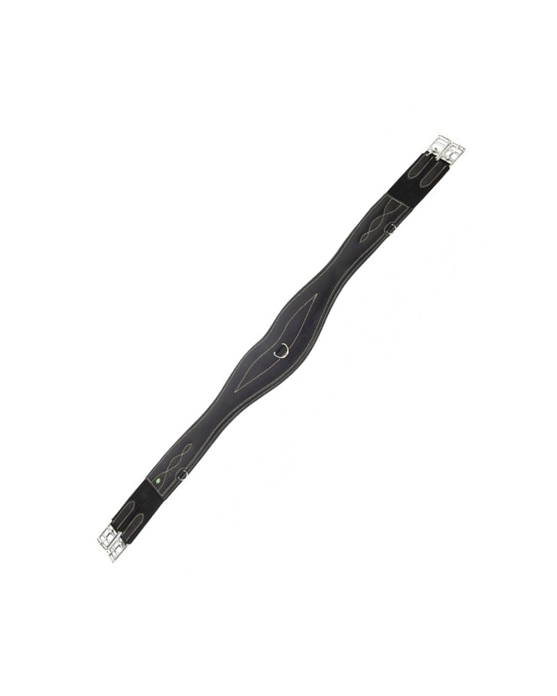 Anatomisch gevormde lederen singel met zachte voering en afgewerkt met sierstiksel. De rolgespen zijn aan beide zijden bevestigd op 3-voudige elastiek. Deze singel is voorzien van 3 d-ringen voor bevestiging van martingaal of hulpteugels.