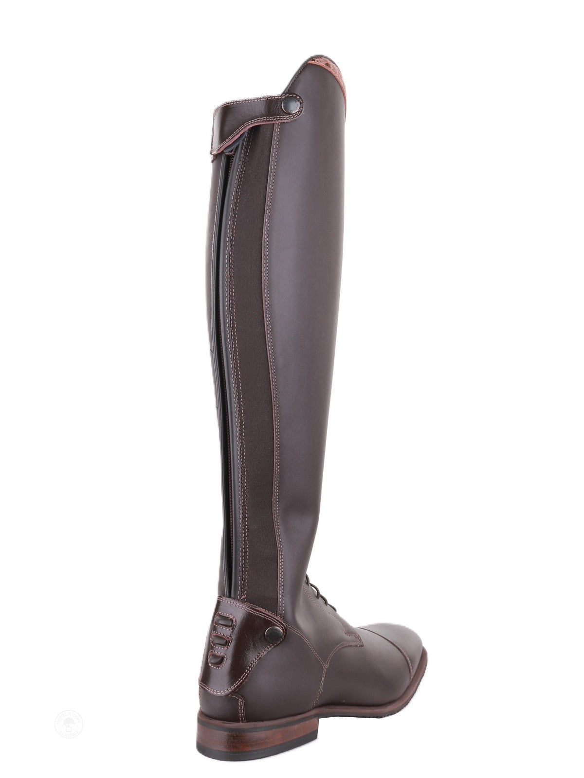 La ligne Tricolore est la gamme d’entrée de De Niro Boot Co. Les bottes d’équitation Tricolore sont fabriquées en cuir de veau souple, produit en Italie. Toutes les bottes Tricolore sont doublées de cuir et disposent d’un panneau élastique à côté de la fermeture éclair YKK de 9 mm au dos. Cela assure un ajustement optimal. Elles sont également équipées d’une semelle intérieure amovible contenant des particules de carbone actif pour absorber les chocs. Enfin, toutes ces bottes possèdent une semelle extérieure en caoutchouc moulé, cousue à la botte.