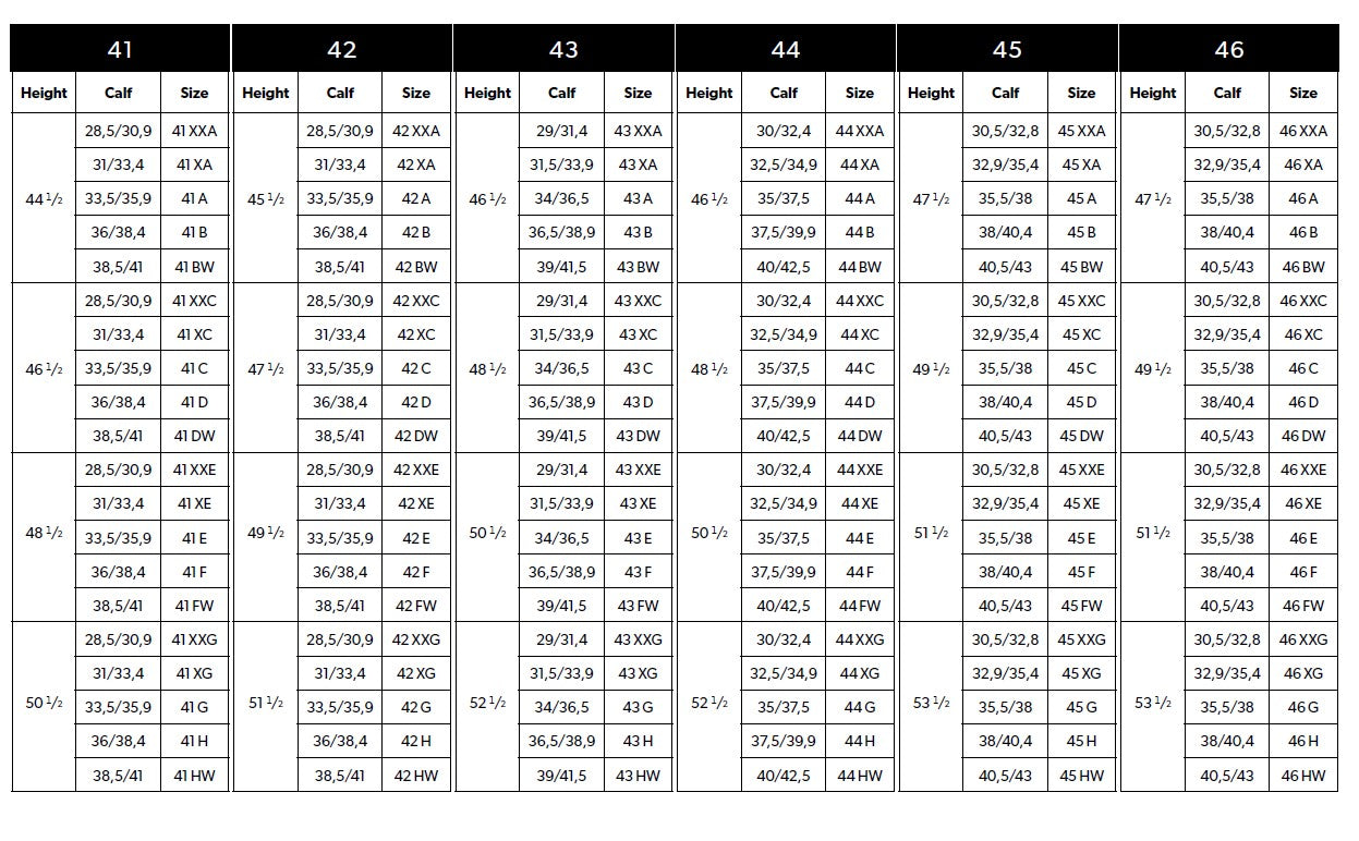 Nous serons ravis de vous aider à déterminer la bonne taille. Consultez ce guide pour mesurer votre jambe, puis reportez-vous au tableau des tailles pour choisir la bonne pointure. N’hésitez pas à nous contacter ou à venir essayer les bottes dans notre boutique.