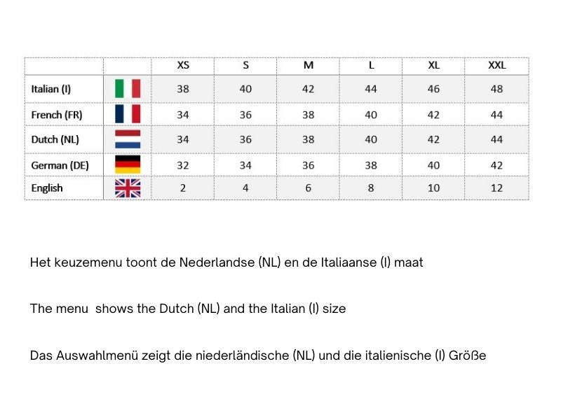 - Maten: NL36-IT40, NL38-IT42, NL40-IT44