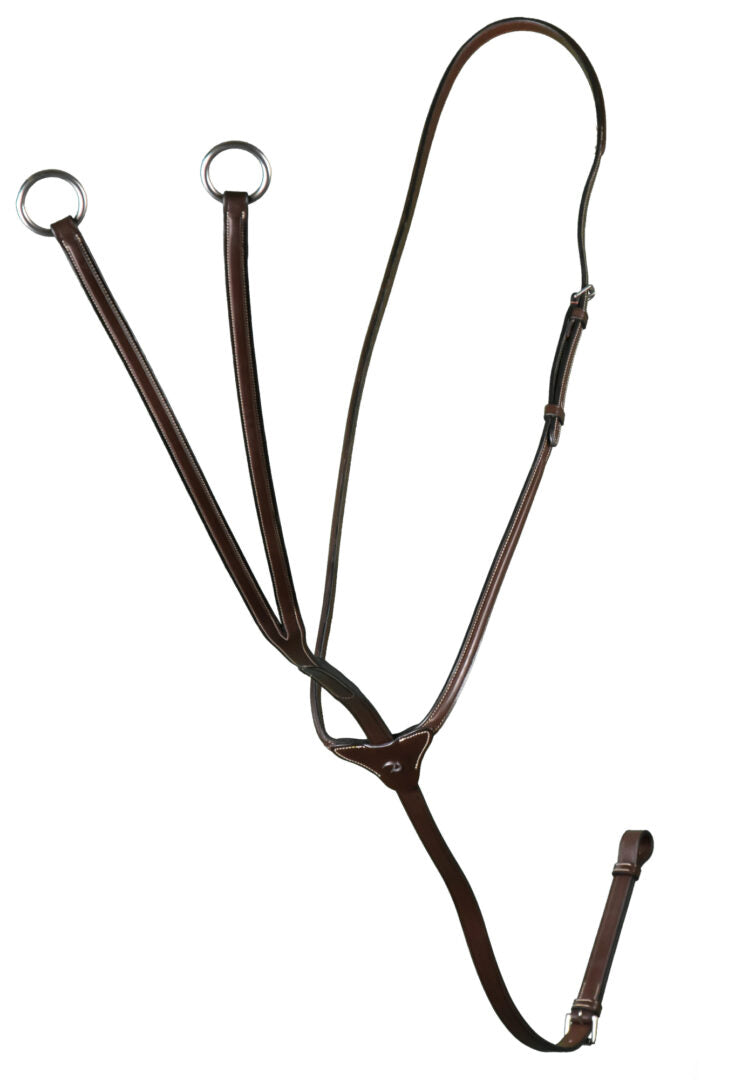 Deze prachtige martingaal past bij de hoofdstellen uit de Dyon US Collection lijn. Het voortuig is bestikt met crèmekleurig stiksel en is voorzien van rvs gespen. Het geheel ziet er hierdoor extra chique uit.