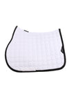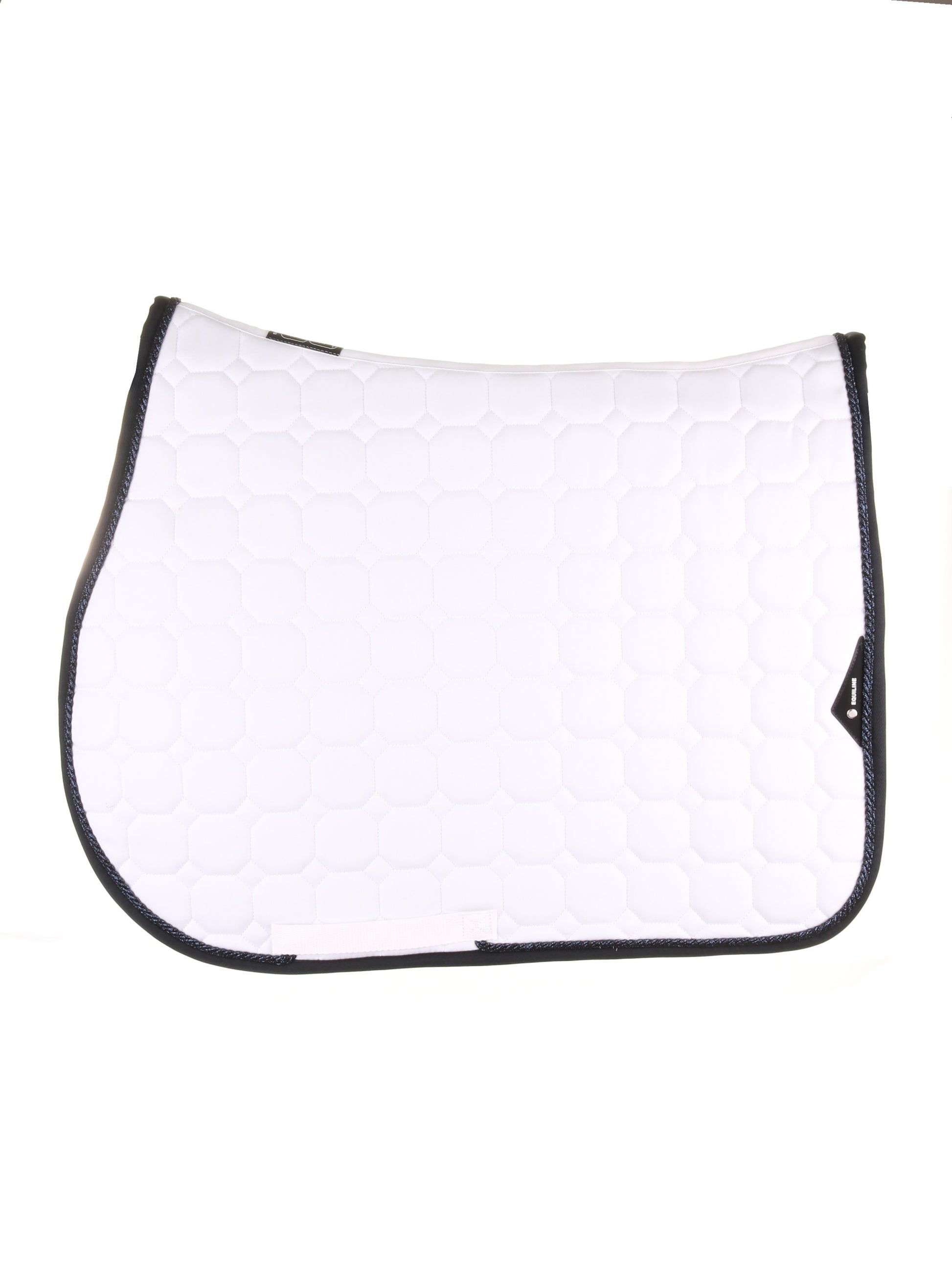 Zadeldekje Octagon in de kleur wit voorzien van een donkerblauwe trim en een navy glitterkoord aan de binnenkant.