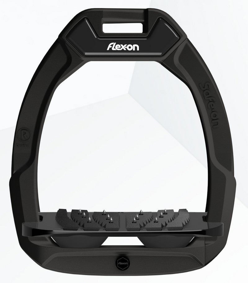 Flex-on Safe-on Composite veiligheids stijgbeugels junior. De stijgbeugels uit de 'Green Composite' range zijn gemaakt van een organisch polyamide materiaal en daarmee minder milieu belastend. De stijgbeugels hebben dezelfde speciale vorm als de Aluminium stijgbeugels voor schokabsorptie en nog eens een extra schokabsorberende demper onderin de beugel. Een stalen frame in de beugel zorgt voor extra sterkte en duurzaamheid. Omdat de beugels eenvoudig met water te reinigen zijn en bijna volledig naar je eigen smaak aanpasbaar is deze stijgbeugel een echte must-have.
